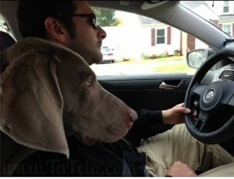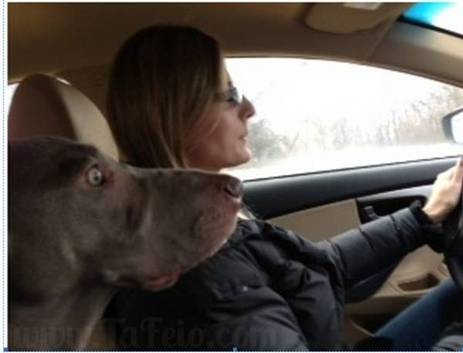 Olhem a expressão do cão ao lado da mulher conduzindo.....