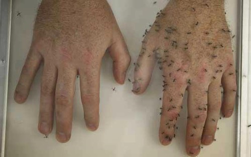O repelente evita que o mosquito sugue o nosso sangue, assim, ele não consegue maturar os ovos e atrapalha a postura, vai diminuindo a proliferação.