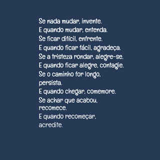 Quero, um dia, poder dizer às pessoas que nada foi em vão… que o AMOR existe, que vale a pena se doar às amizades a às pessoas, que a vida é bela sim, e que eu sempre dei o melhor de mim… e que valeu a pena!"